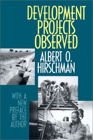 Development Projects Observed is one of Albert Hirschman's lesser known books, but one that was highly influential in my professional development. It is a review conducted in the 1960s (I believe) of a number of large scale World Bank projects that, for the most part, went badly wrong at some point. In reviewing them, he finds that in most cases adjustments were made, problems solved and on balance they were positive over the longer term. This leads to general reflections on the fact that practitioners under-estimate botht the problems likely to arise in a project, but also their capacity to address any problems that might arise. He refers to this as the principle of the "Hiding Hand" which allows for progress in situtations of uncertainty and factors in the reality that missteps and miscalculations are simply a part of progress.